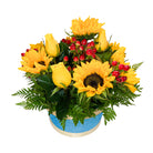 Arreglo Canasta con 6 Rosas, 6 Girasoles e Hiperycum