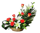 Arreglo Canasta Plato con 8 Rosas y Liliums