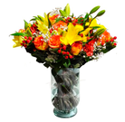 Arreglo con 20 Rosas, Liliums en Florero Candelabro
