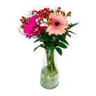 Arreglo con 5 Gerberas e Hiperycum en Florero Pequeño Modelo Gélida