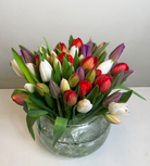 Arreglo con 50 Tulipanes Variados en Pecera Grande