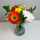 Arreglo con 2 Gerberas, Hiperycum  y maules en Florero Modelo Florentino
