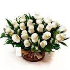 Arreglo Canasta Condolencias con 30 Rosas Blancas y Astromelias