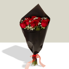 Ramo 12 Rosas y Gypsophilia en Papel Negro