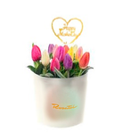 Sombrerera Crema Mediana con 9 Tulipanes Variados y Top Happy Mother Day