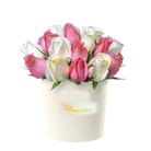 Sombrerera Crema Mediana con 21 Rosas (Blancas y Rosadas)