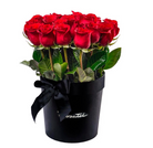Sombrerera Negra Grande con 25 Rosas y Cinta Negra