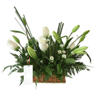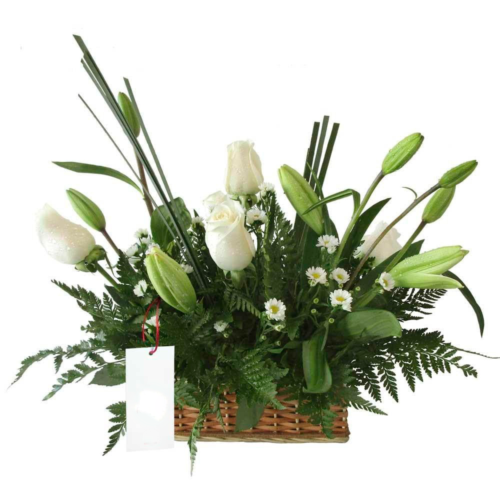 Canasta Rectangular Condolencias con 5 Rosas y Liliums