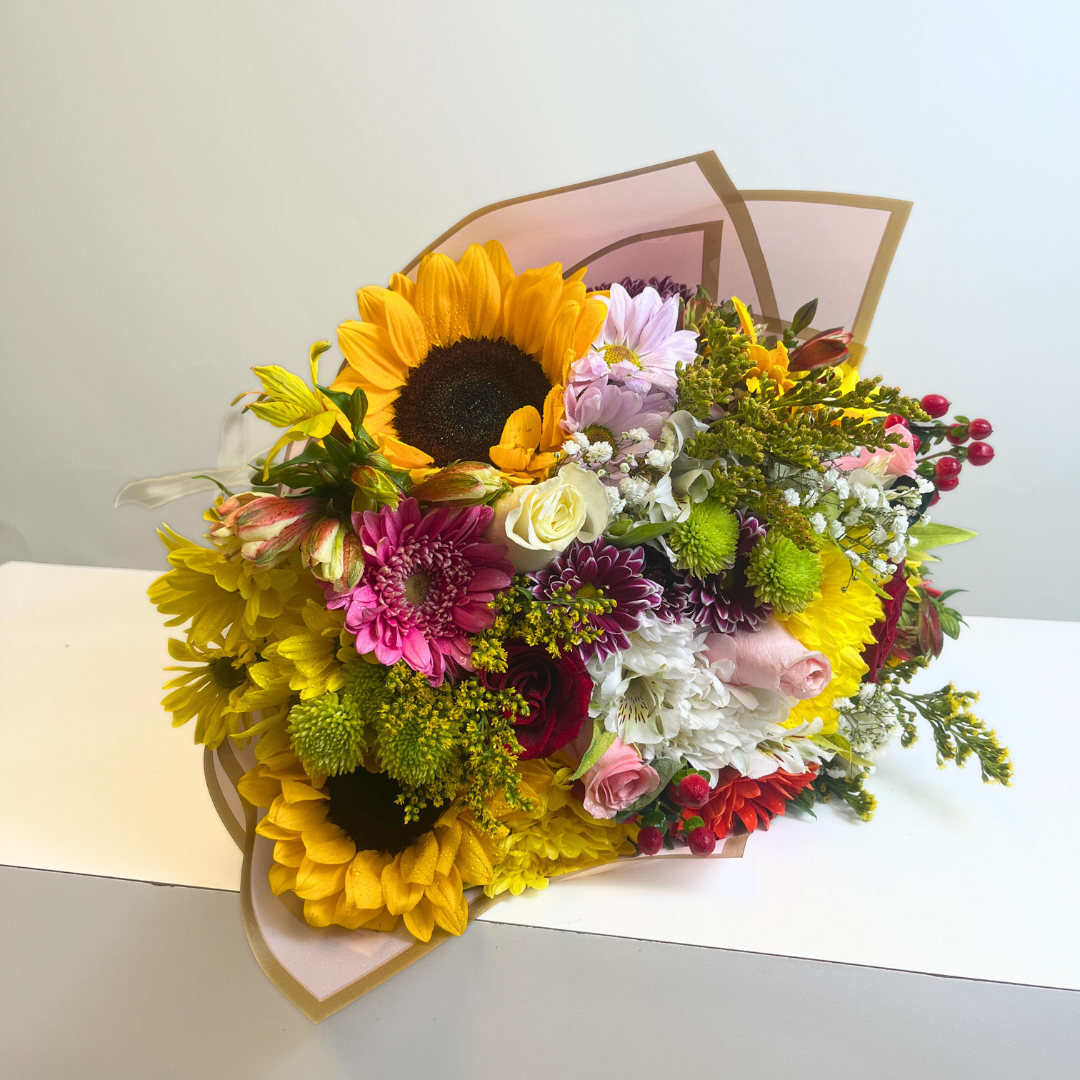 Elegancia: Los Ramos con Flores presentan un diseño sofisticado y actual, que realza la belleza de las Rosas, Lilium y Girasoles, Maules, sin restar protagonismo.