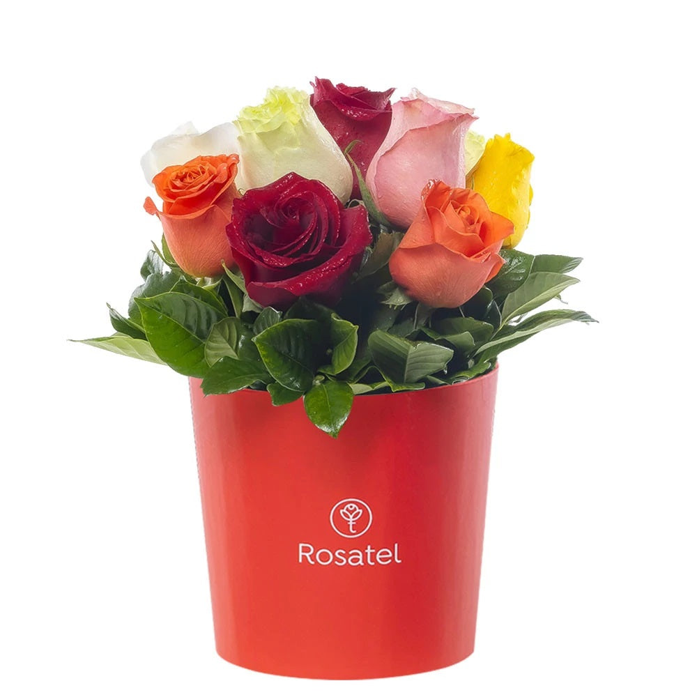 Sombrerera Roja Mediana con 10 Rosas Variadas (colores según disponibilidad)