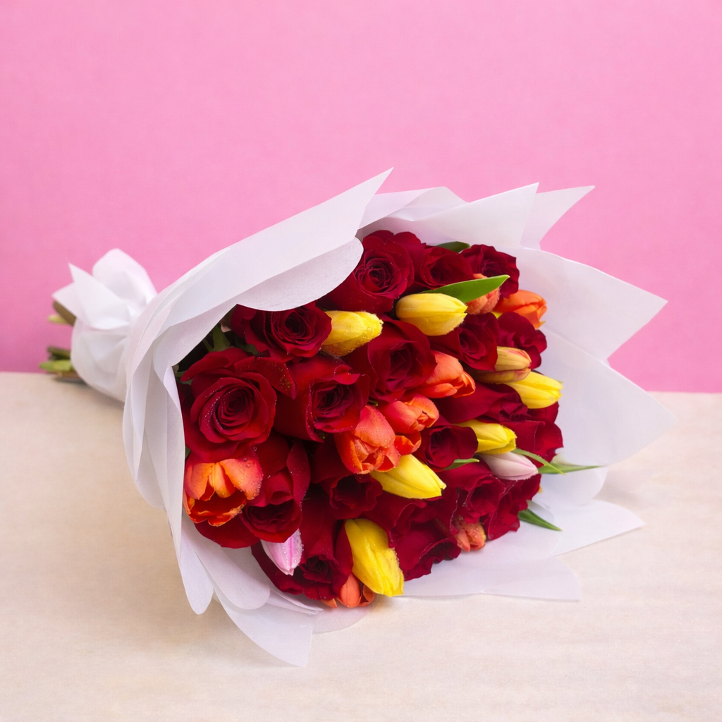 Tenemos Rosas Ecuatorianas, Flores Nacionales e Importadas. En todas ellas, aseguramos calidad, frescura y una amplia variedad de formatos de Flores para regalar, tales como: Cajas con Rosas, Arreglos con Flores, Cajas con Tulipanes, Ramo de Flores, Flores en Floreros, Flores en Canastas, Rosas Preservadas.