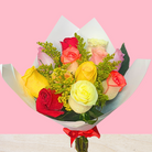 Ramo con 12 Hermosas Rosas Variadas y Solidago en Papel coreano