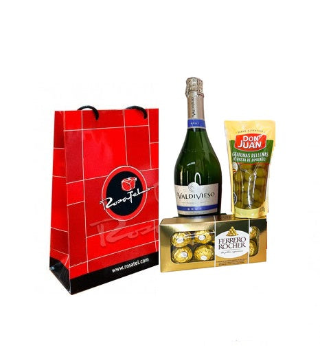 Pack Espumante Grande Valdivieso de 375 ml, Ferrero 8 unid y Aceituna.