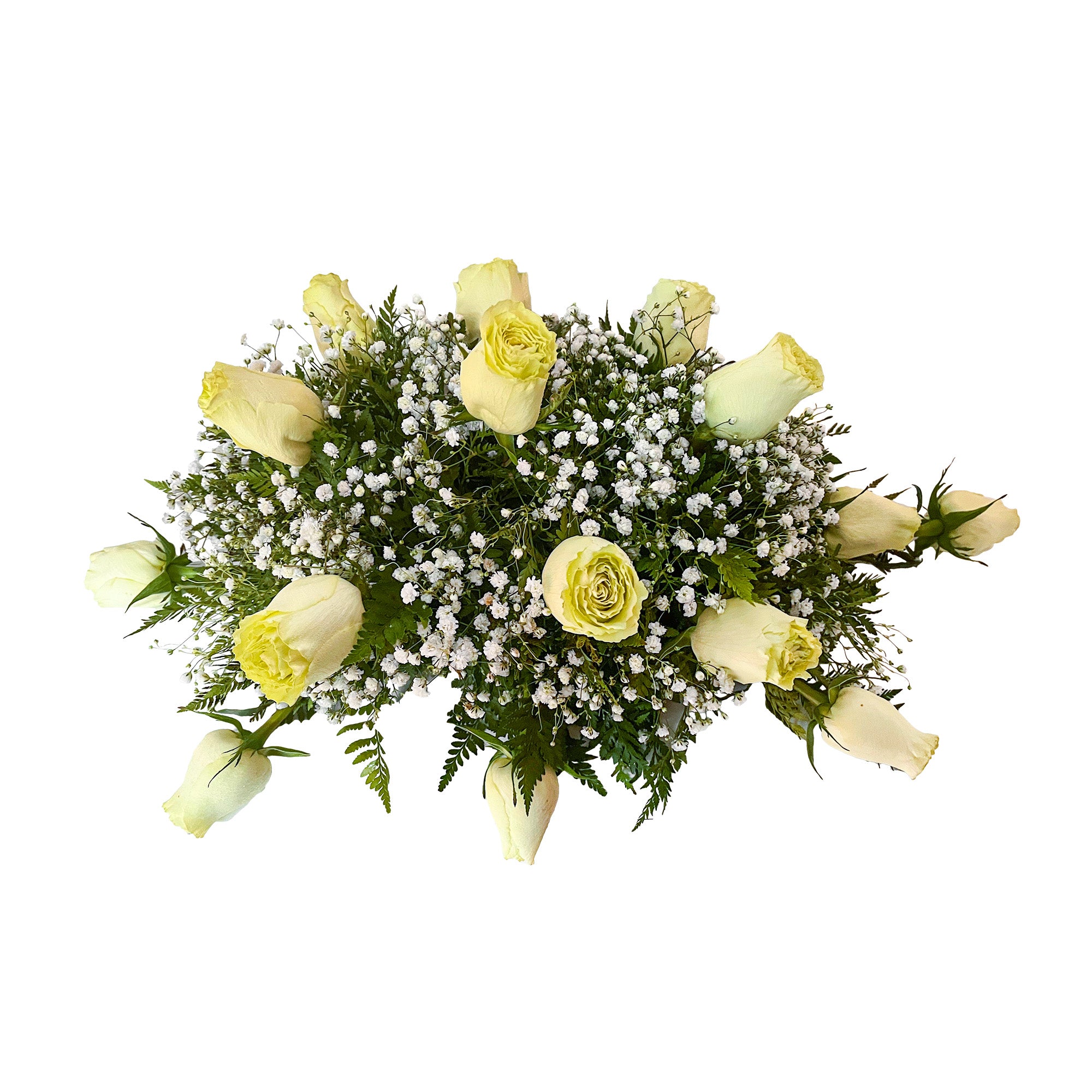 Cojín con 18 Rosas Verdes y Gipshofilia