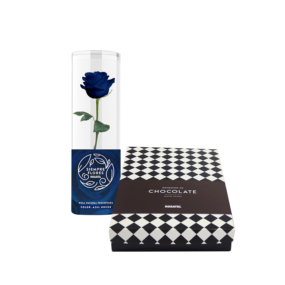 Rosa Preservada Short Azul y Chocolate Sorini de 5 Unid.
