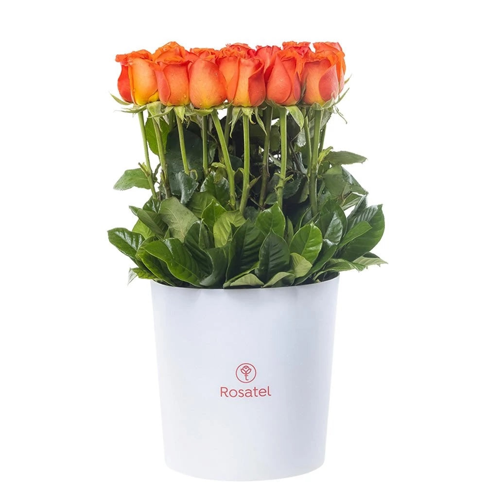 Sombrerera Blanca Grande con 25 Rosas