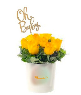Sombrerera Crema Mediana con 10 Rosas y Varilla Oh Baby