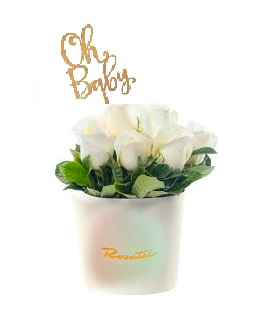 Sombrerera Blanca Mediana con 10 Rosas y Varilla Oh Baby