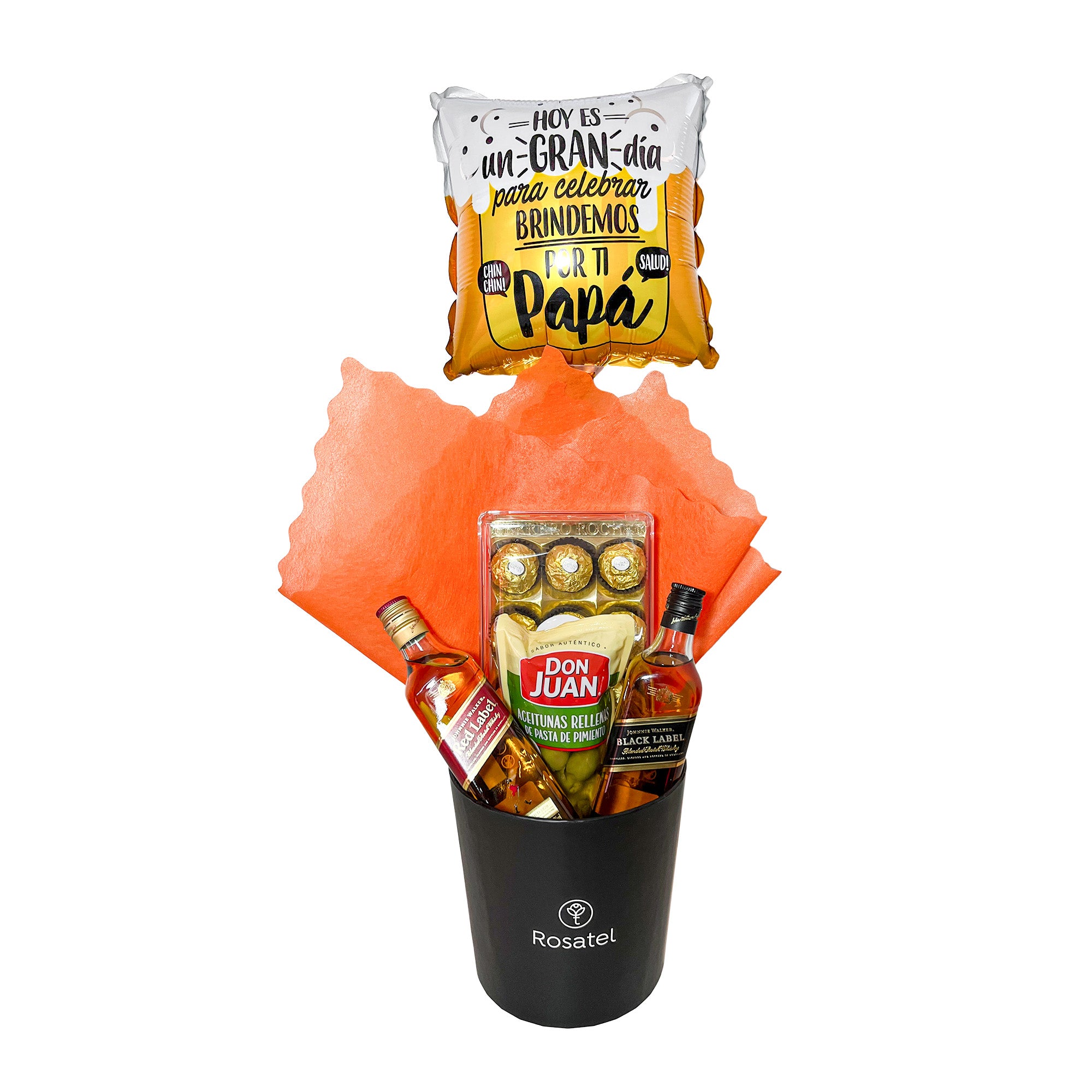 Sombrerera con Whiskies JW Black y Red Pequeños, Ferrero, Aceitunas y Globo Papá